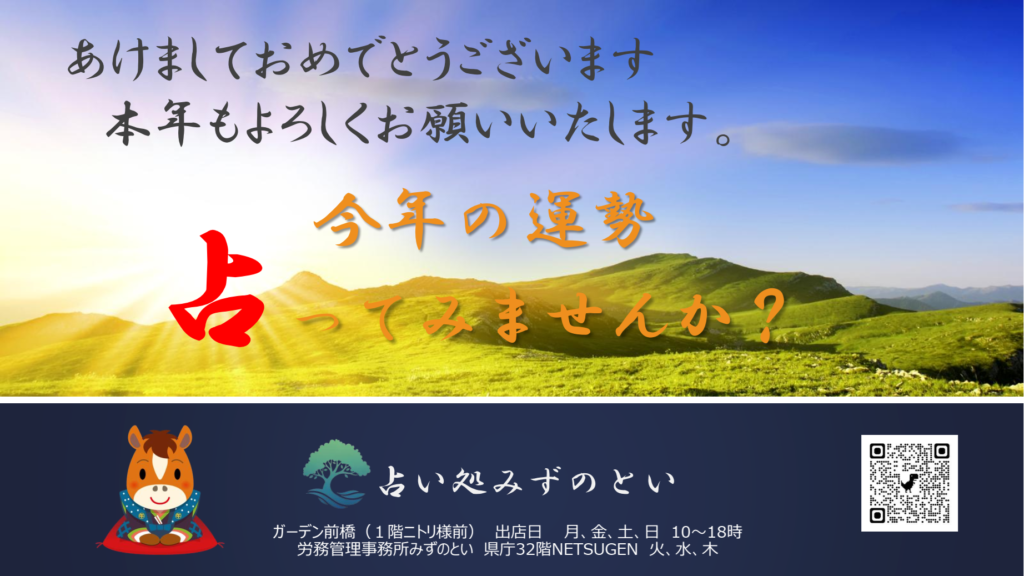 ※火曜、水曜、木曜日は社労士業務もしているため、占い業務とご相談業務はご予約の方のみの対応となります。HPからご予約いただくか、直接電話にてご確認ください。